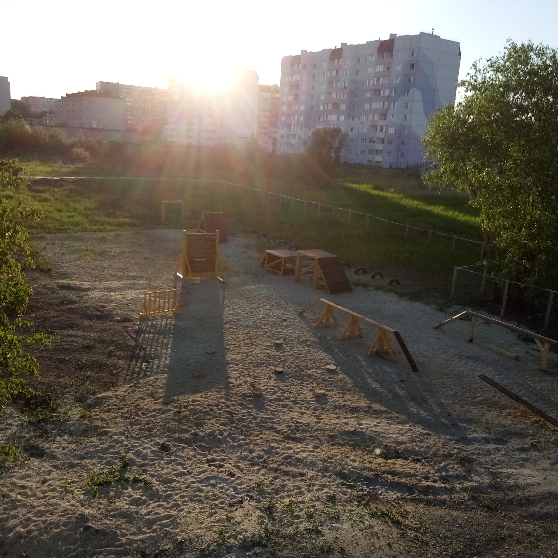 Площадка площадью 2400 м2, форма прямоугольная, 44 х 55 метров. Площадка огорожена забором рабицей, высота забора до 1.5 метров. Покрытие комбинированное песок/трава. На территории находиться бытовка для персонала и инвентаря. Дежурное освещение.